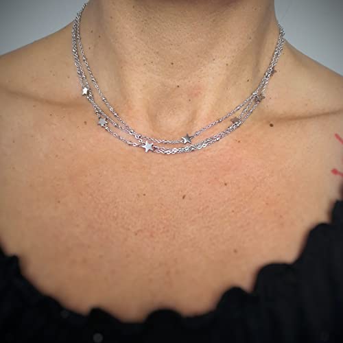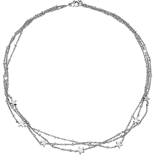 Beloved ❤️ Collana Essential tre file con charms - Realizzata in acciaio inossidabile - Charms a tema (Silver Stelle)