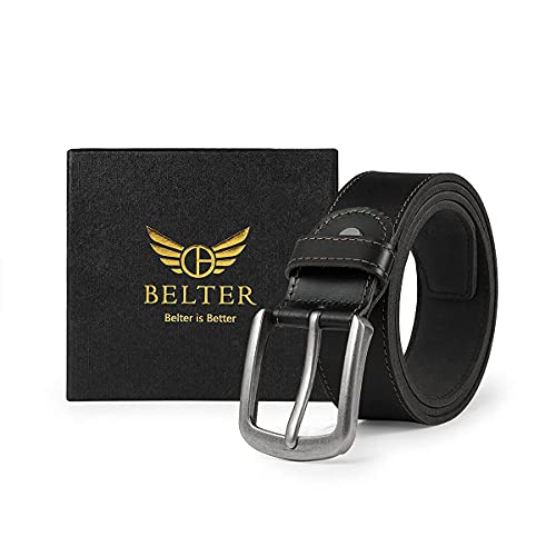 BELTER Cintura Uomo Vera Pelle di Pieno Bufalo Cinture Cowboy 110-160cm Grande e Alto Jeans Casuale 3.8cm Largo con Confezioni Regalo (150cm, Nero)