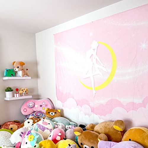 BelugaDesign Moon Tapestry | Carino Kawaii Rosa Bianco Pastello Giapponese Sailor Anime Decorazione da Parete | Panno Appeso per Camera Da Letto Soggiorno (50x60, Rosa Bianco)