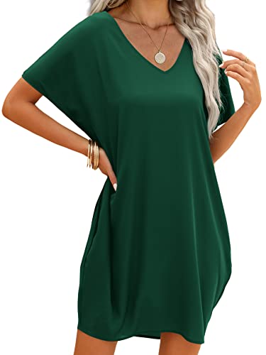 【Caratteristica speciale】: un abito casual casual a maniche corte, scollo a V, maniche corte, l'abito a tunica è al ginocchio e l'orlo è dritto. Questo vestito t-shirt è molto leggero, comodo e traspirante, il che lo rende un must per il tuo guardaroba.
