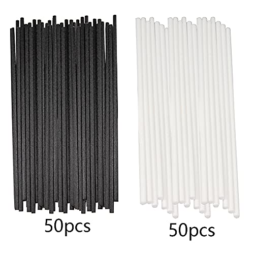Belvanr Bastoncini per Diffusori 100 Pezzi Diffusore Bastoncini Bastoni di Ricambio Profumo Casa Bastoncini Bastoncini in Legno di Rattan per Profumo Fragranza(Nero e Bianco)