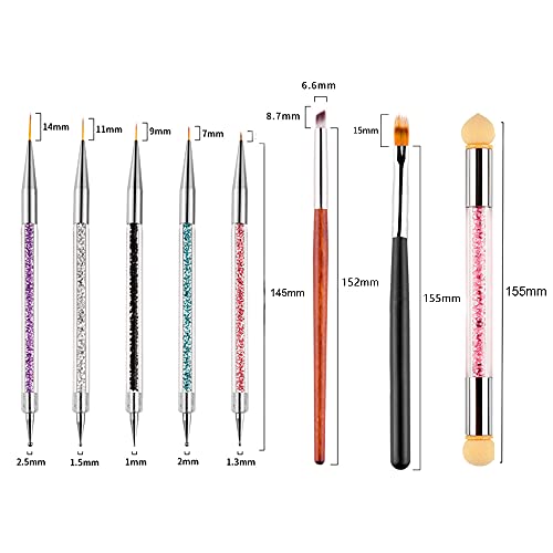 Belvanr Pennelli per Unghie Set da 14 Pezzi Pennello Gel Unghie Ricostruzione Penne Dotter per Nail Art Pennelli Nail Art con Ombre Pennello Spugnette Pennelli Unghie Doppia Testa per Nail Art
