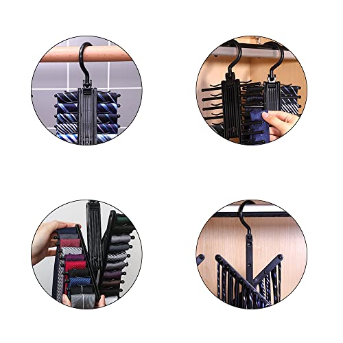 Il pacchetto include: Il pacchetto contiene 2 pezzi di organizzatori di cravatte nere, ciascuno con 20 ganci per contenere 20 cravatte o sciarpe.