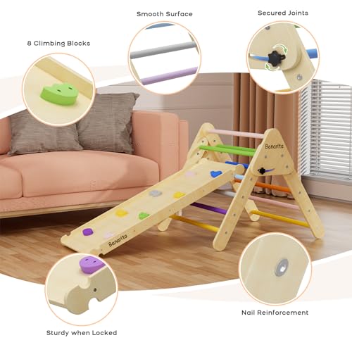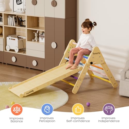 BenaRita Struttura da Arrampicata Triangolare 2 in 1 Arcobaleno Set da Arrampicata per Interni Set Triangolo da Arrampicata in Legno Montessori Pieghevole con Rampa Scivolo per Bambini Piccoli
