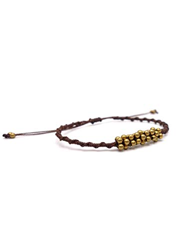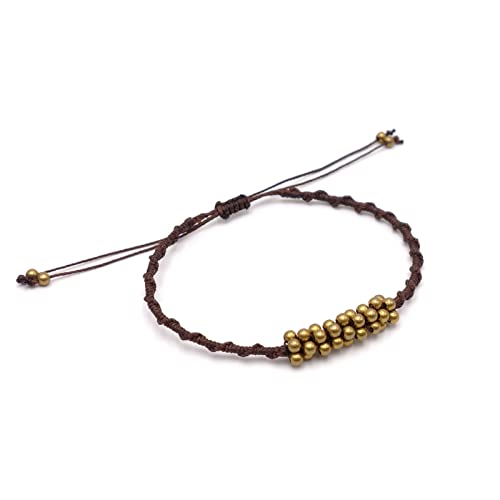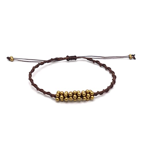Benava, braccialetto tibetano portafortuna, marrone con perle di rame