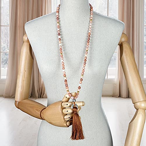 BENAVA Collana da donna con nappe in avventurina, collana lunga con ciondolo in rame e nappa | rosario rosario catena da preghiera rosa | Boho Women Necklace Jewelry Collier