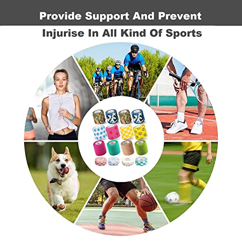 Benda Elastica Autoadesiva Coesiva 16 Rotoli Bende Elastiche per Bendaggi Garza Autoadesiva Tape Sportivo per Piedi, Mani, Ginocchia, Braccia 5cm x 4.5m 12 Rotoli, 5cmx 2.5m 4 Rotoli