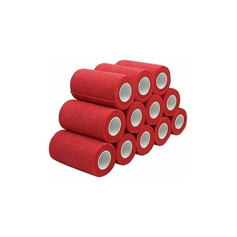 Bendaggio autoadesivo, elastico, traspirante, confezionato singolarmente, dimensioni 7,5 cm x 4,5 m (teso) Il bendaggio adesivo è autoadesivo, non si attacca pelle, capelli o vestiti, si attaccano solo a se stessi, si strappano a mano Si adatta bene alla forma del corpo avvolto, non si restringe se indossato e ha un retro antiscivolo resistente al sudore e all'acqua Ideale per realizzare medicazioni per zoccoli, bende e bende nelle aree in movimento Materiale: 95% cotone, 5% elastan Fornitura: 12 rotoli di autoadesivo bende, 7,5 cm x 4,5 m, nere