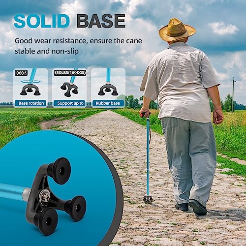 Base triangolare girevole a forma di caviglia: La base girevole a 360 gradi consente la massima sicurezza e stabilità su tutti i terreni. Rispetto ad altre basi, il design triangolare è più robusto e consente al bastone di stare in piedi da solo.