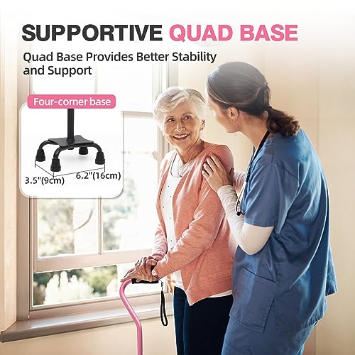 BeneCane Bastone da passeggio a quattro piedi allungabile con morbido manico imbottito per uomini e donne, leggero, comodo, base stabile per uomini, donne e anziani