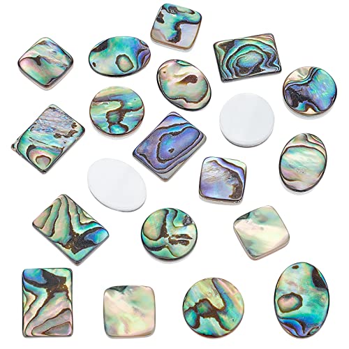 BENECREAT 16Pcs 4 Style Natural Abalone Shell Beads Beads Round Ovale Quadrato Paua Shell Perline per la creazione di Gioielli Fai da Te Artigianato Perline Abbellimenti