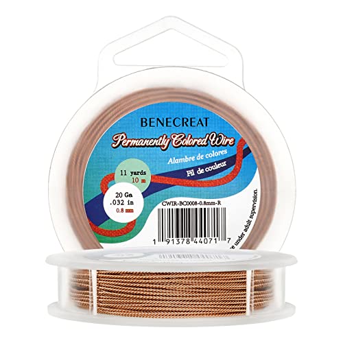 BENECREAT 0.8mm/20 Gague Rame Rosso Resistente All'Appannamento Filo di Torsione Filo di Perline di Gioielli per Collana di Braccialetti e Altri Progetti Fatti A Mano, 32.8 piede/11 iarde (10 m)