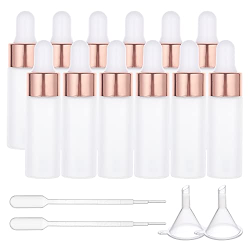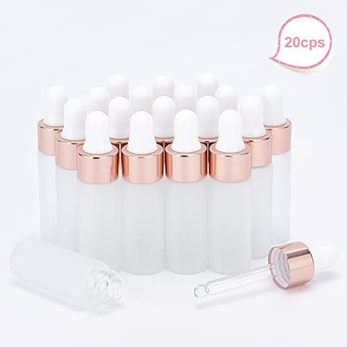 BENECREAT 20 Confezioni 5ml Flaconi Contagocce Campione in Vetro Smerigliato Flacone per Tintura Rosa con 2 Imbuti 2 Pezzi Pipette di Trasferimento in Plastica per Oli Essenziali - Oro Rosa