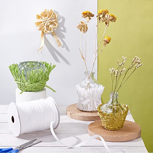 BENECREAT 300 m/328 yarde 8 mm di Larghezza Nastro di Rafia Nastro di Carta di Rafia Spago Da Imballaggio per Festival Regali di Decorazione e Tessitura Fai Da Te, Bianco