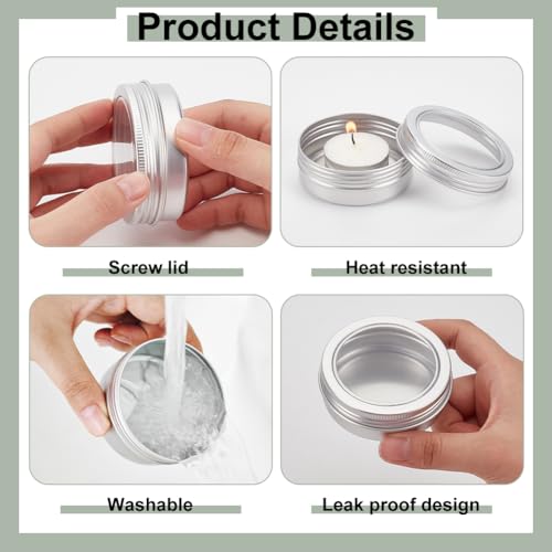 BENECREAT 14 Pack 60ml Lattine a Vite in Alluminio Rotonde con Coperchio a Vite Contenitori con Coperchio con Finestra Trasparente - Ottimo per Spezie, Caramelle, Te o Regali (Platinum)