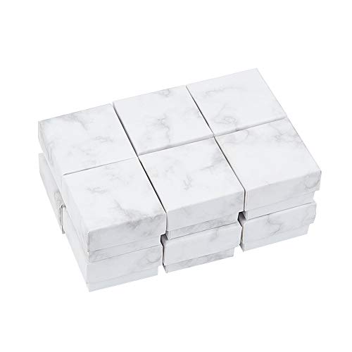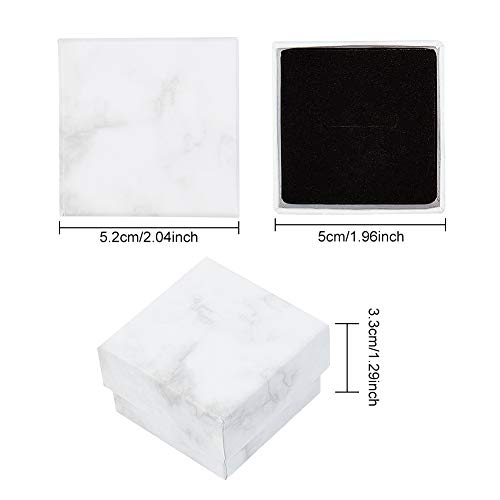 BENECREAT 12 Pack Scatola per Orecchini ad Anello Kraft 5.2x5.2x3.3cm Quadrato Piccolo Scatole Regalo per Gioielli in Cartone Biancomarmo per Anniversari.Matrimoni. Compleanni