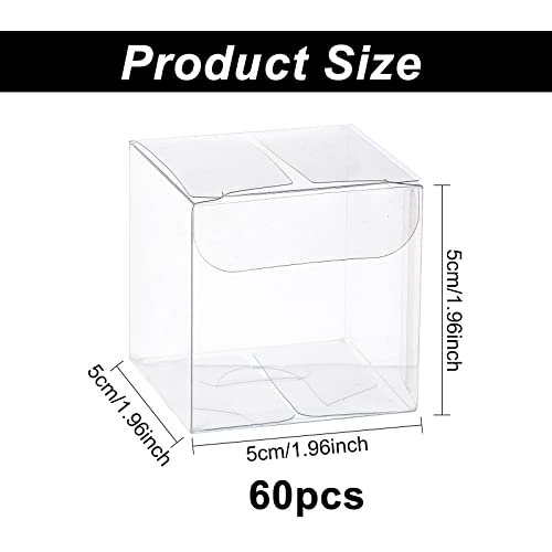 BENECREAT 60 Pack Scatole Contenitore di plastica Pieghevole Confezione Regalo Trasparente Cioccolatini per Feste di Compleanno 5x5x5cm