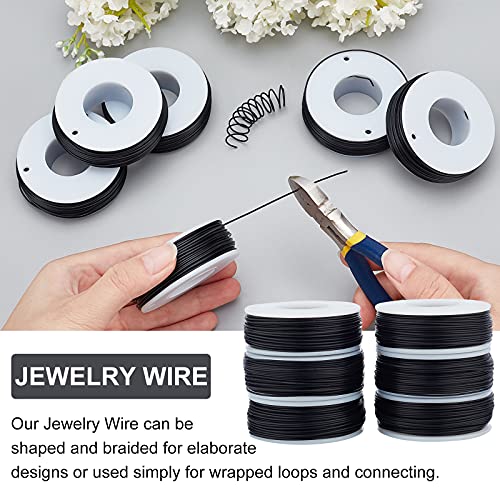 Benecreat - 6 rotoli da 216 m di filo per artigianato in alluminio nero 0,8 mm di filo di perle con pinza laterale per la fabbricazione di gioielli e artigianato