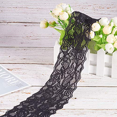 BENECREAT 2 Rotoli 18m Nastro di Pizzo Nero 80mm Tessuto di Pizzo Elastico per Cucito, Artigianato, Decorazione di Nozze e Regalo 9m / Rotolo