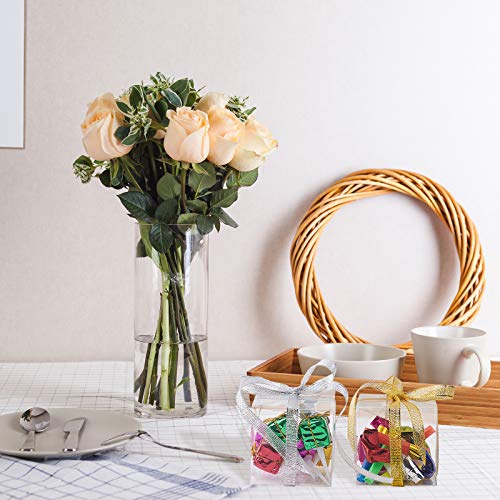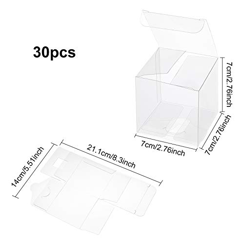 BENECREAT 30 PCS Scatole Regalo Trasparenti in PVC 7x7x7cm con 2 Rotoli di Nastri Glitter Oro e Argento per Matrimoni, Feste,
