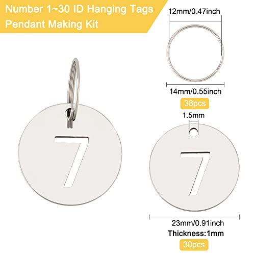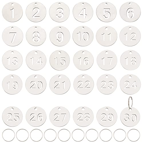 BENECREAT 30 targhe in acciaio inox con numero scheletro 1 - 30, 23 mm, con 38 anelli portachiavi, targa per dormitorio, centro commerciale, ufficio, scuola o altri luoghi