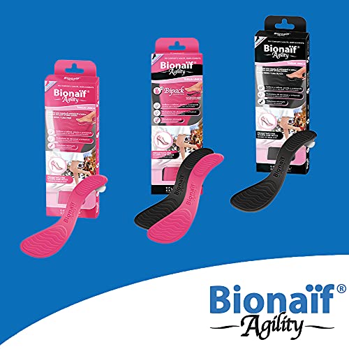 BIONAIF AGILITY - è un sottopiede in lattice autoadesivo progettato per i tacchi alti e studiato per piedi sempre in movimento, durante attività lavorative e di tempo libero. Bionaif Agility è spesso solo due millimetri per essere adattabile alla maggior parte delle scarpe femminili. E' dotato di micro-rilievi antiscivolo, anti vesciche e massaggianti. Il lattice è ultra delicato, leggero, traspirante.