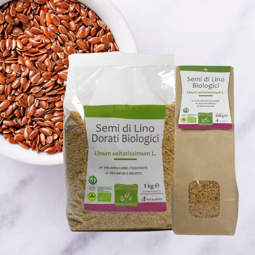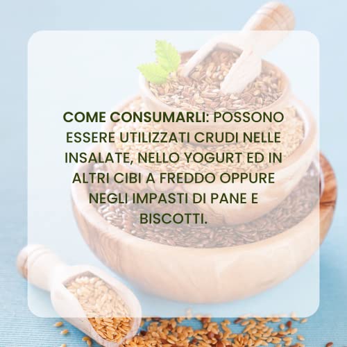 PRODOTTO BIOLOGICO: 100% Lino (Linum Usitatissimum L.) da agricoltura biologica. Confezionati in ATMOSFERA PROTETTIVA per mantenere intatti il gusto ed i nutrienti - Formato da 1 Kg.