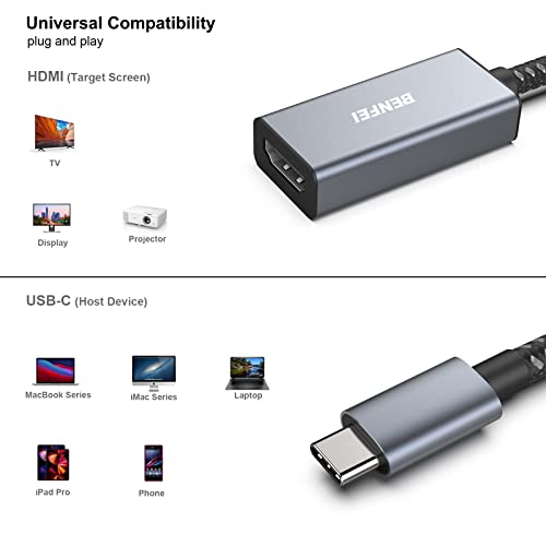 DESIGN COMPATTO - L'adattatore portatile da USB-C a HDMI di Benfei con un design compatto collega un computer, desktop, laptop o altri dispositivi con una porta USB-C a un monitor, proiettore, HDTV o altri dispositivi con una porta HDMI;