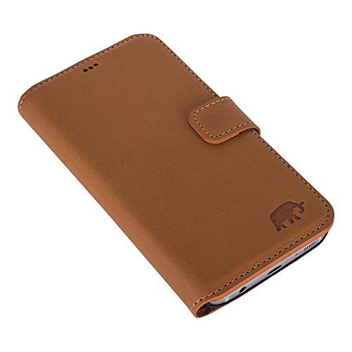 Benito Custodia a Portafoglio per Samsung Galaxy S7 Slim, Fatto a Mano, Morbido, in Vera Pelle, Made in Europe, portatessere - Portafoglio da Viaggio - Lusso Protezione per Casi, Pelle, Tan, Galaxy 7
