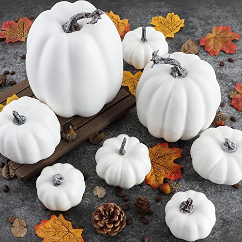 Benjia Decorazioni Autunnali Zucca, Grandi Zucche Artificiali Finte Finte in Plastica Bianca per Esterni per Halloween Decorazioni per la Tavola di Casa Festa del Raccolto Autunnale 8 Pezzi