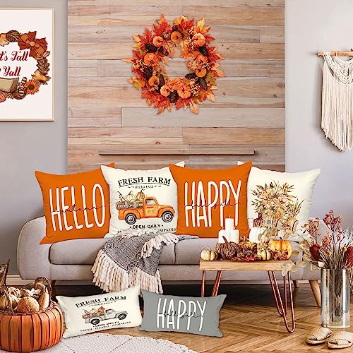 Benjia 4 Pezzi Federe Cuscini Autunno Copricuscini 40x40cm, Vaso per Camion di zucca Decorazioni Halloween Giorno del Ringraziamento per Divani Letto in Camera da Letto Arancia 40 x 40 cm