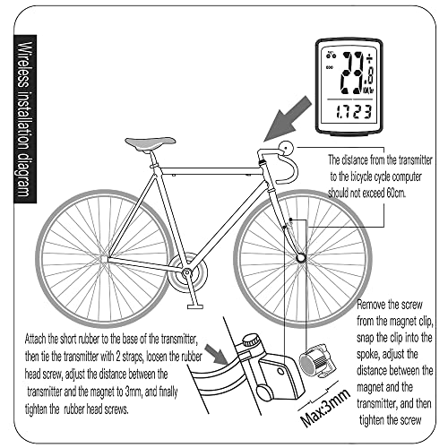 Benkeg Computer da bici wireless,Computer da bici wireless Schermo LCD multifunzione Computer da bicicletta Mountain bike Tachimetro Contachilometri IPX6 Impermeabile Ciclismo Temperatura misurabile C