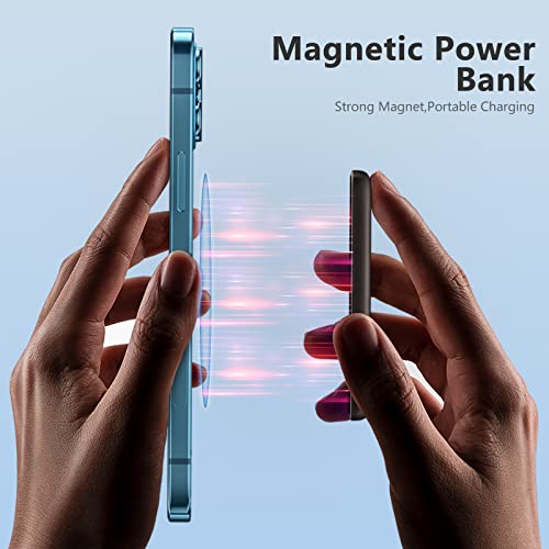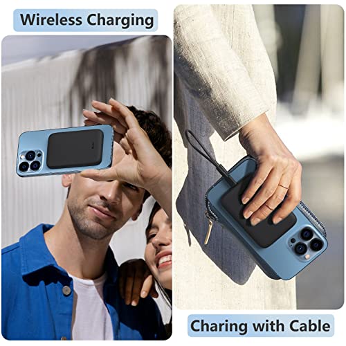 BENKS Batteria magnetica compatibile con Magsafe 5000 mAh Wireless Power Bank Supporta caricabatterie wireless leggero portatile compatibile con iPhone 14/13/12 Serie/Airpods (Black)