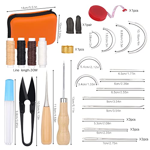 Borsa portaoggetti: tutti Strumento per Cucire in Pelle sono conservati in una piccola borsa arancione e una vasta gamma di strumenti può soddisfare le tue diverse esigenze. Comodo da riporre e trasportare, il kit di riparazione della tappezzeria per cucire in pelle è molto adatto a principianti e viaggiatori.