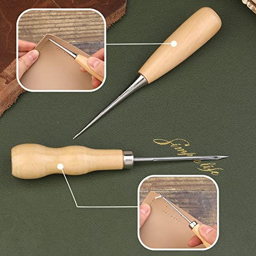 Aghi per cucire in pelle: il nostro kit per cucire in pelle comprende aghi di varie dimensioni e forme: aghi per materassi curvi, aghi smussati a cruna larga, aghi per guanti, aghi per vele, aghi per sacchi. È possibile scegliere il tipo di ago appropriato in base alle proprie esigenze, infilatura semplice e funzionamento semplice. Dopo l'uso, l'ago lungo e dritto può essere conservato in un flacone per l'ago.