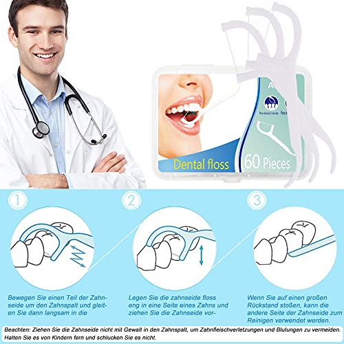 ♦ Design integrato per stuzzicadenti e filo interdentale - il floss dentale è molto delicato, può pulire facilmente lo spazio dentale facilmente raggiungibile dallo spazzolino, si inserisce facilmente tra i denti e può pulire molti residui. La coda del filo interdentale può fungere da stuzzicadenti, adatto per grandi spazi e per pulire grandi residui.