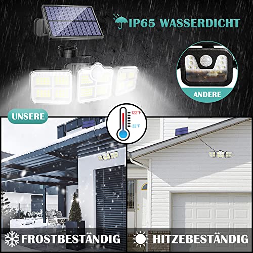 【Lampade solari per esterni con sensore di movimento 3 modalità】 Le luci solari a 146 LED hanno 3 modalità a scelta: ① modalità sensore di luce forte, ② Modalità sensore di luce dimmerabile, ③ Modalità luminosa media e leggera. Lampade solari: il sensore di movimento aggiornato rileva le persone a una distanza di 10-17 piedi. Soddisfa le tue diverse esigenze.