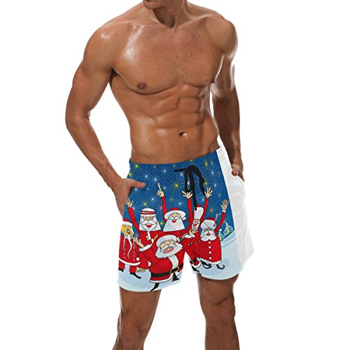 Bennigiry, costume da bagno da uomo con Babbo Natale a zigzag per surf, asciugatura rapida, pantaloni da spiaggia Multi L