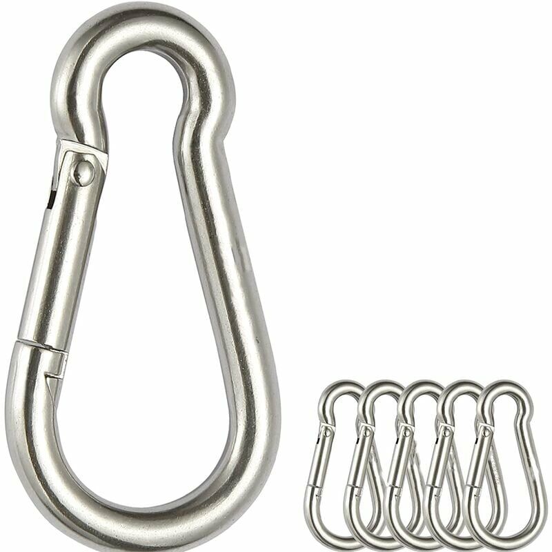Ideale per zaini, portachiavi, catene, corde, campeggio, escursionismo, pesca, animali domestici, attrezzi per interni ed esterni, accessori fai da te. Capacità: 140N. Accessori versatili per il fissaggio, il rigging e l'ancoraggio: collega/scollega rapidamente funi, catene, cinture. Le porte caricate a molla possono essere facilmente aperte e chiuse per consentire il montaggio di oggetti importanti sulla porta. p > Il prodotto include: 2,3 6 moschettoni in acciaio inossidabile 304. DUREVOLI PER DURARE: i moschettoni premium sono realizzati in acciaio inossidabile 304 per resistere alla corrosione