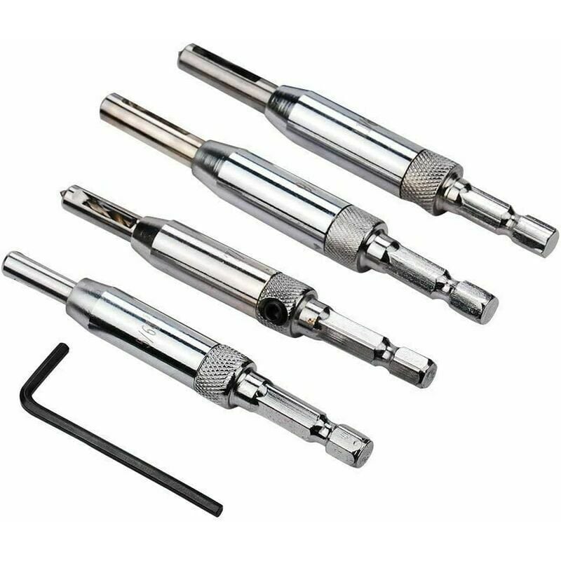 Punta autocentrante di precisione: le punte autocentranti di precisione sono essenziali per fori pilota su cerniere, maniglie, chiudicassetti e altre parti, il cono che circonda il trapano assicura la centratura del foro pilota rispetto al foro di montaggio Foro pilota per trapano svasatore Affilato: bordo angolato di 135 gradi della testa della punta, rende più veloce la perforazione della cerniera nella posizione dei fori della cerniera.La guida attorno alla punta del trapano viene spinta dalla molla per mantenerla in contatto con la fresatura della parte da riparare. I trucioli di legno vengono scaricati automaticamente: la segatura viene scaricata automaticamente da entrambi i lati dei fori, senza un trapano bloccato, non è necessario rimuovere i trucioli di legno, sviluppando efficacemente il tuo lavoro Facile da usare e installare: diverso legno di difficoltà, necessita di trapano di centraggio diverso, basta smontare la vite e per sostituire il trapano. Verranno forniti