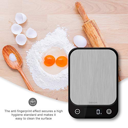Benon Bilancia da cucina digitale, acciaio inox - funzioni TARA e Auto Off - da 1 g fino a 5 kg - incl. batterie AAA - display LED g-kg-oz-lb oz-ml
