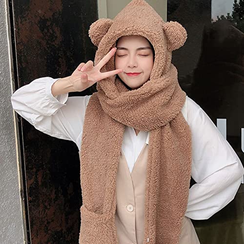 Benoon Donne Inverno Cappelli Termici Donne Cappello Orso Orecchio Autunno Inverno Freddo No Tesa Caps Sciarpa Guanti per Outdoor, cachi,