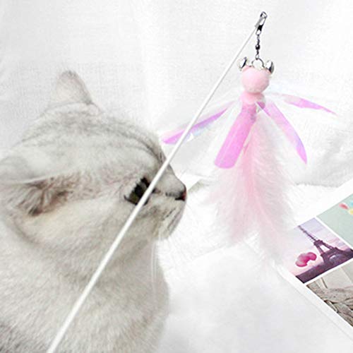 Benoon Giocattoli di Piume per Gatti con Testina di Ricambio, Forma di Libellula Gatti Teaser Stick Giochi Interattivi per Animali Domestici Colore Casuale