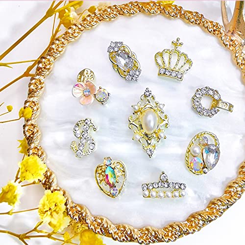 Benoon, set da 10 pezzi, per nail art, con strass, corone, dollari per manicure, in lega 3D, decorazioni per nail art
