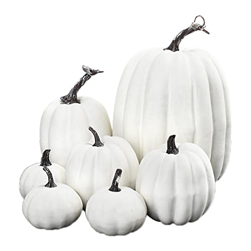 Benoon, set di 7 zucche artificiali per raccogliere la raccolta delle zucche, raccolta delle cadute, in polistirene espanso dai colori vivaci, giardino, decorazione di Halloween, colore: bianco