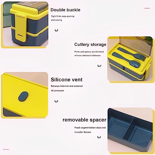 【A Prova di Perdite】Il classico design a doppio strato non occupa spazio. Ogni contenitore di questo resistente lunch box termico è dotato di un divisorio che ha una buona tenuta. Si consiglia di aprire la valvola di ventilazione prima di rimuovere il divisorio per ridurre la differenza di pressione dell'aria tra l'interno e l'esterno del contenitore e renderlo più facile da aprire! (Suggerimento: le scatole Bento sono più adatte per conservare cibi asciutti e leggermente brodosi).