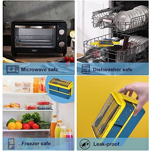 Bento Lunch Box, Scatole Bento Impilabile, Ermetico Scatola Pranzo con Posate, Tazze da Zuppa e Sacchetto Isolato per Adulti e Bambini, Bento Box Microonde per Scuola Lavoro (Blu)