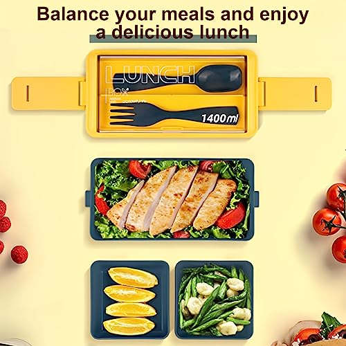 【Lunch Box Kit】Il pacchetto include: 1 x 1400ml Porta Pranzo, 1 x Posate, 1 x Tazze da Zuppa, 1 x Borsa per pranzo. Il nostro porta pranzo termico adotta un design a 2 livelli e 3 scomparti. Nella parte superiore, c'è uno scomparto separato per le posate, comodo per forchette e cucchiai e utilizzabile anche come portacellulare. Puoi organizzare liberamente le partizioni per formare diversi scomparti per ospitare più tipi e più cibo.