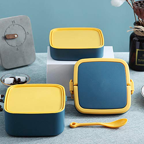 Bento Box,Bento Box con 2 Scomparti,Lunch Box con Manico,Lunch Box Ermetico,Lunch Box Bambini Bento,Bento Box a Prova di Perdite,Bento Lunch Box Adulti,con Cucchiaio,per Scuola,Lavoro,Picnic(Blu)