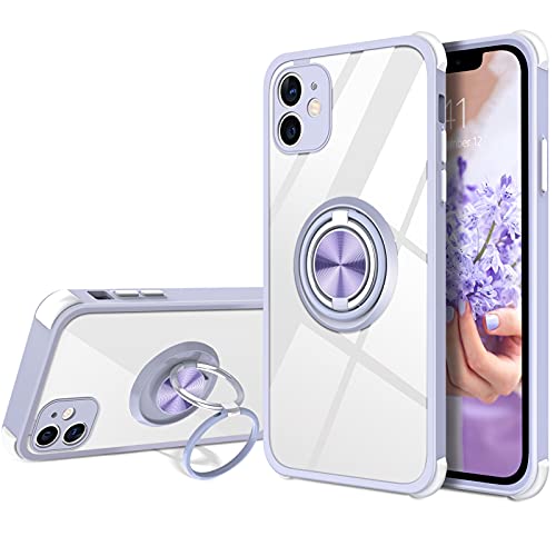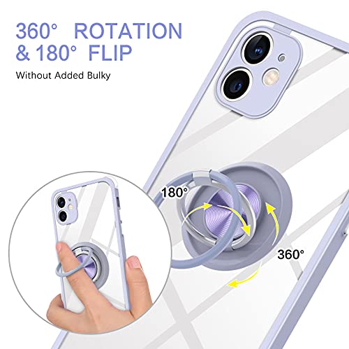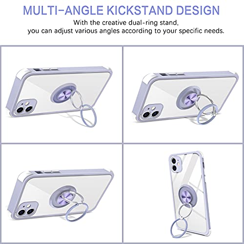 BENTOBEN Cover compatibile con iPhone 11, custodia per iPhone 11, con supporto a doppio anello a 360°, supporto magnetico per auto custodie di protezione per iPhone 11, trasparente/viola